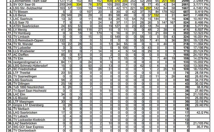 Doppel-Saarlandmeisterin als jeweils Saar-Pfalz-Vize wurde Lara Kopmeier in der W15 beides mit Bestleistung im Stabhochsprung (2,30 Meter) und im Dreisprung (9,36 Meter).