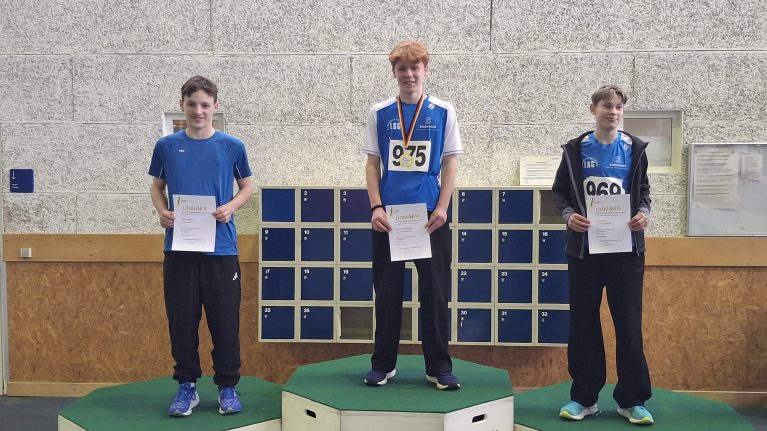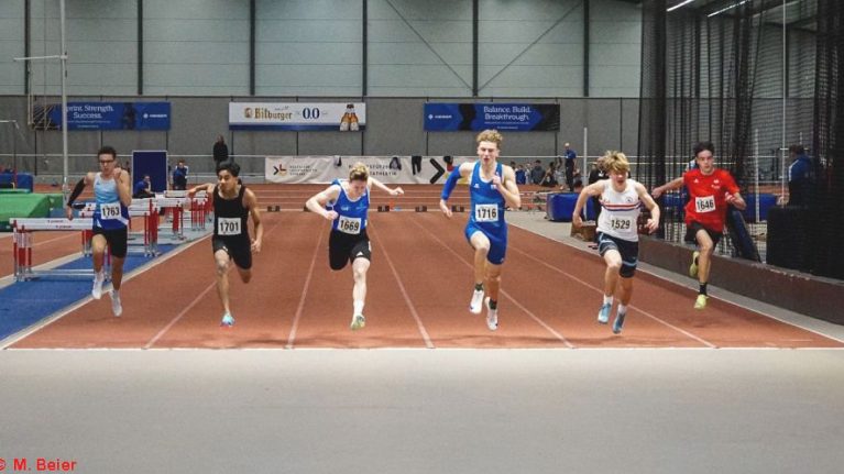 Einen (Sprung-)Lauf hatte an diesem Tag Moritz Beier. Mit jeweils neuen Bestleistungen konnte er sich die Titel im Hochsprung und im Stabhochsprung sichern. Im Stabhochsprung packte er einen halben Meter (!) auf seine bisherige Bestleistung, überquerte 3,60 Meter. Auch im Hochsprung war er mit 5 Zentimeter plus mit übersprungenen 1,65 Metern nicht zu schlagen. Sprungtitel Nr. 3 im Weitsprung blieb ihm allerdings verwehrt. Mit 5,39 Metern kam er bis auf fünf Zentimeter an seine Bestleistung heran, musste sich dennoch seinem Vereinskameraden Cédric Wenzelburger geschlagen geben, der sich nach schwierigem Einstieg in den Wettbewerb mit 5,50 Metern die Meisterschaft holte. Seinen ersten Titel hatte sich Cédric bereits vorher über die 60 m-Hürden in 9,47 Sekunden gesichert. Dabei verhinderte die in die Jahre gekommene, unebene Bahn, dass er sich mit verbessertem Start eine neue Bestzeit holen konnte.